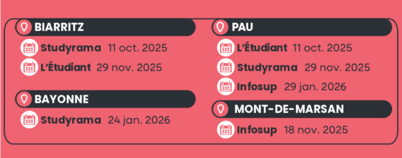 Nous sommes ravis de vous donner rendez-vous pour faire votre connaissance et vous renseigner sur notre campus basque.